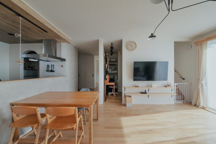 リビングにはテレビや棚を置いたり、お気に入りの絵を飾ったりするための壁が必要です。設計段階で家具の位置を具体的にシミュレーションし、通路を確保した上で、コンセントの使い勝手まで含めた壁の配置を検討しましょう。