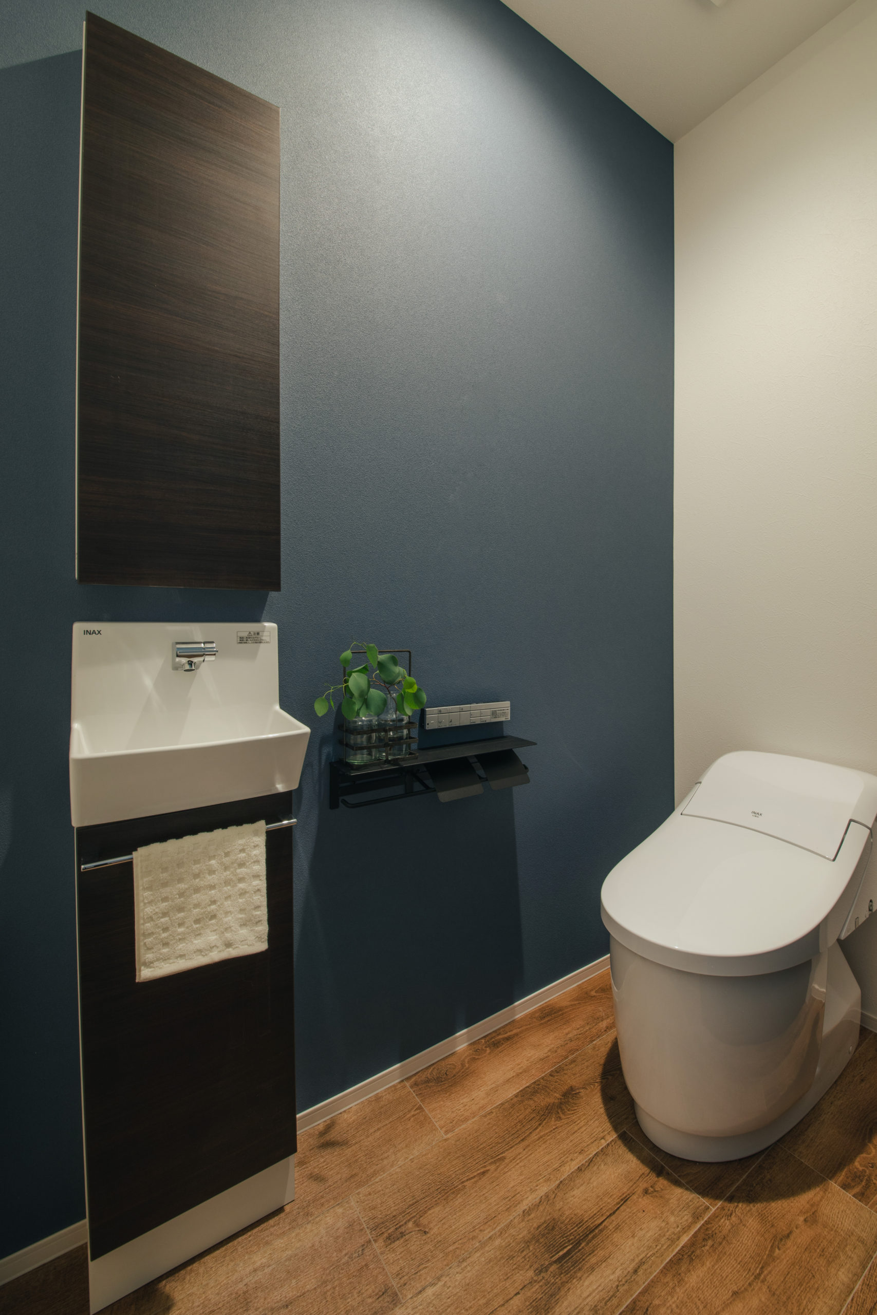 収納をすっきり確保でき、上部のカウンターに手洗いを設置したり、小物を飾ったりすることもできます。