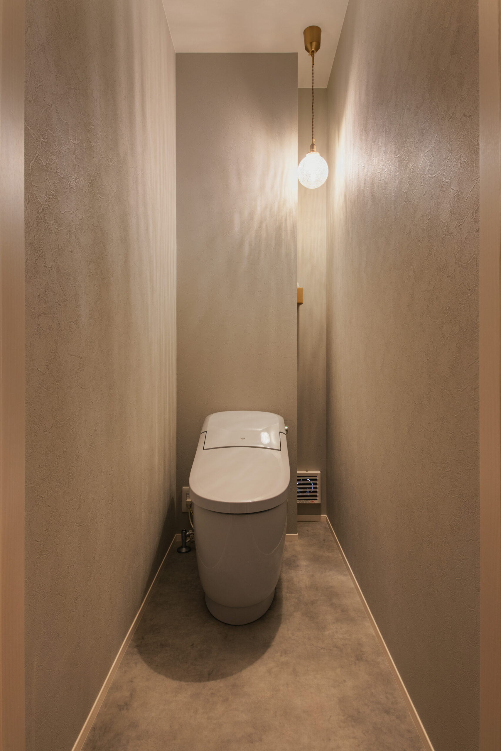 来客も使う1階のトイレは、ペンダントライトで落ち着きのある空間を演出。