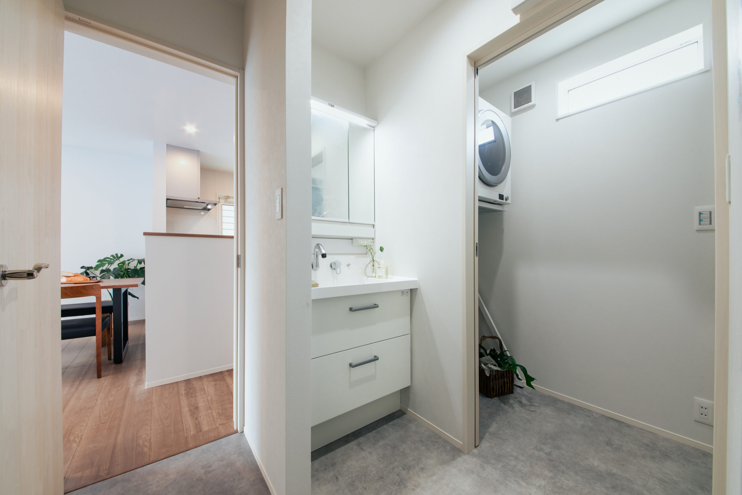 キッチンからのアクセスも良い場所に、洗面室とランドリースペースを配置。