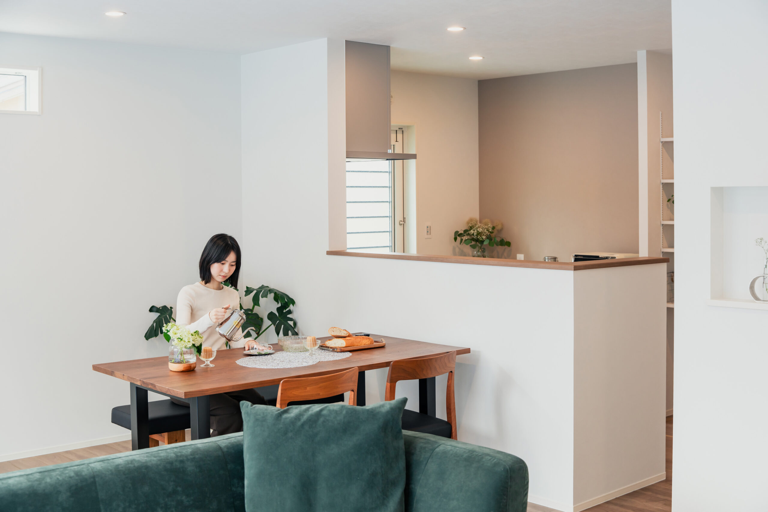リビングを見渡せる対面キッチンは、料理中もダイニングやリビングで過ごす家族との会話が弾みます。