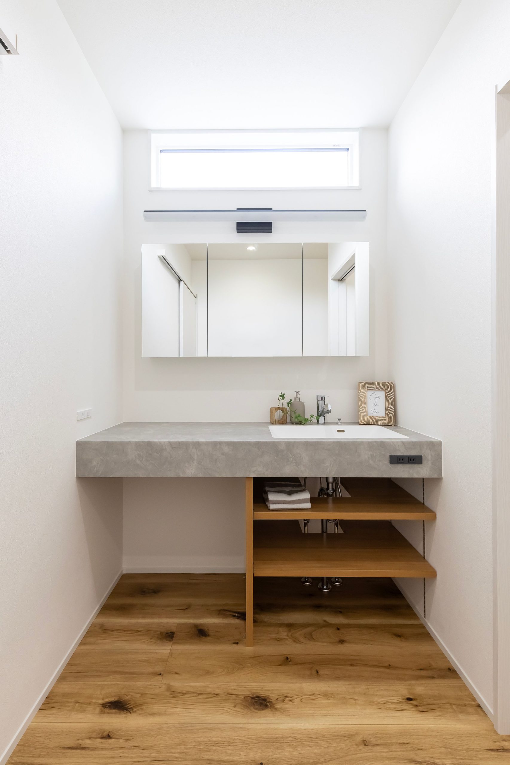 自然光を取り入れ明るく仕上げた洗面。